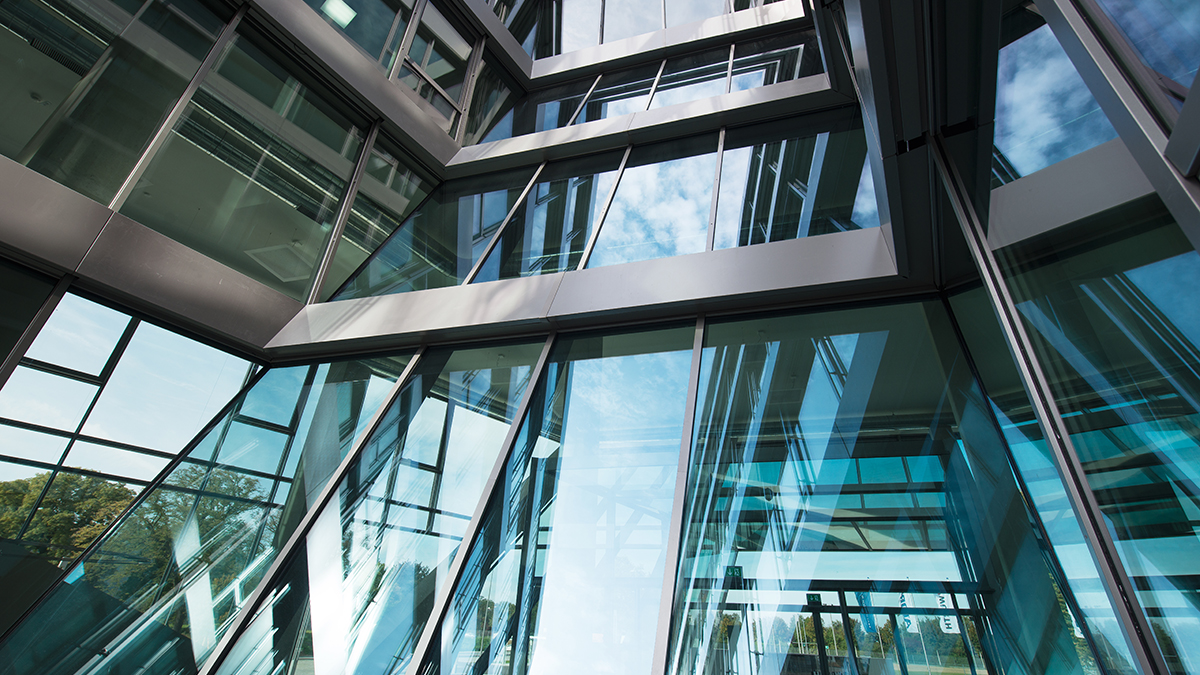 Services Provided: Aluminum-glass and steel-glass post-and-beam façades, element façade, all-glass vestibule, steel-glass entrance door system, aluminum panels, sun protection